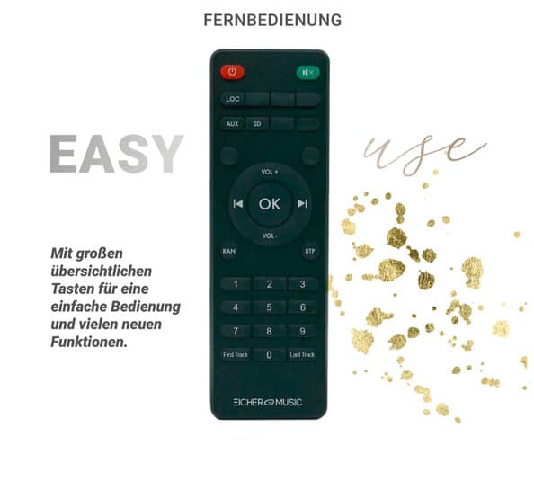 - Fernbedienung, um die einzelnen Titel direkt anzuwählen